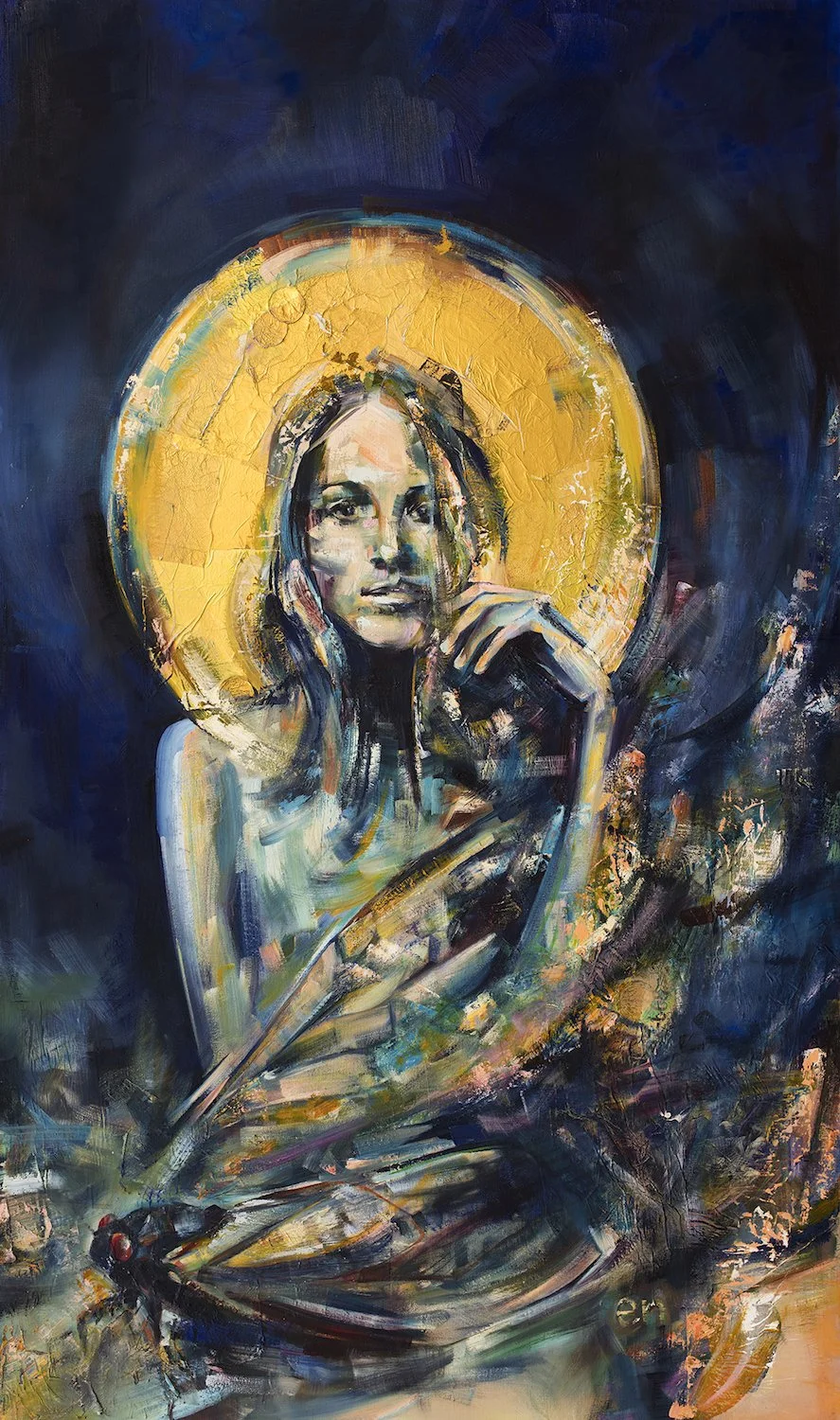 Trees have me thinking about how our actions build up over time. Tree ring after tree ring, I am building my life and my art practice. I was reminded that although I am very much at the beginning of my career as an artist, I have amassed some work. A curator recently poured through it for a show that will go up in September and chose this 2016, five foot tall painting of St. Cecelia for the show’s promotional poster. The work I did 8 years ago is still serving me somehow. What a treat.